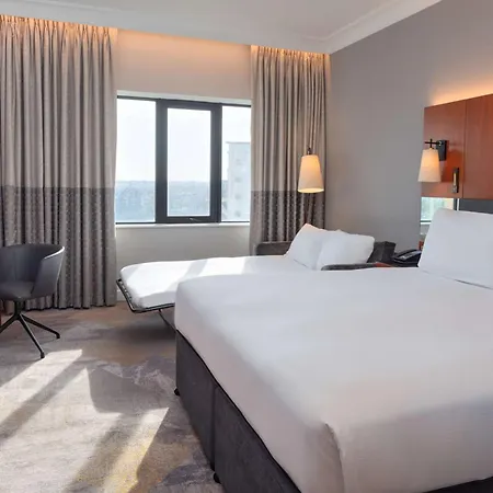 Specializing in comfort and luxury, Hilton Belfast is adjacent to The Waterfront Hall and offers breathtaking views of the River Lagan. The hotel features spacious rooms equipped with modern amenities, such as flat-screen TVs and mini-fridges. Guests can dine at Sonoma Bar and Grill, which boasts an Irish-themed menu. Its prime location also provides easy access to key attractions such as the Odyssey Arena and various city-centre shops, perfect for both leisure and business travelers.